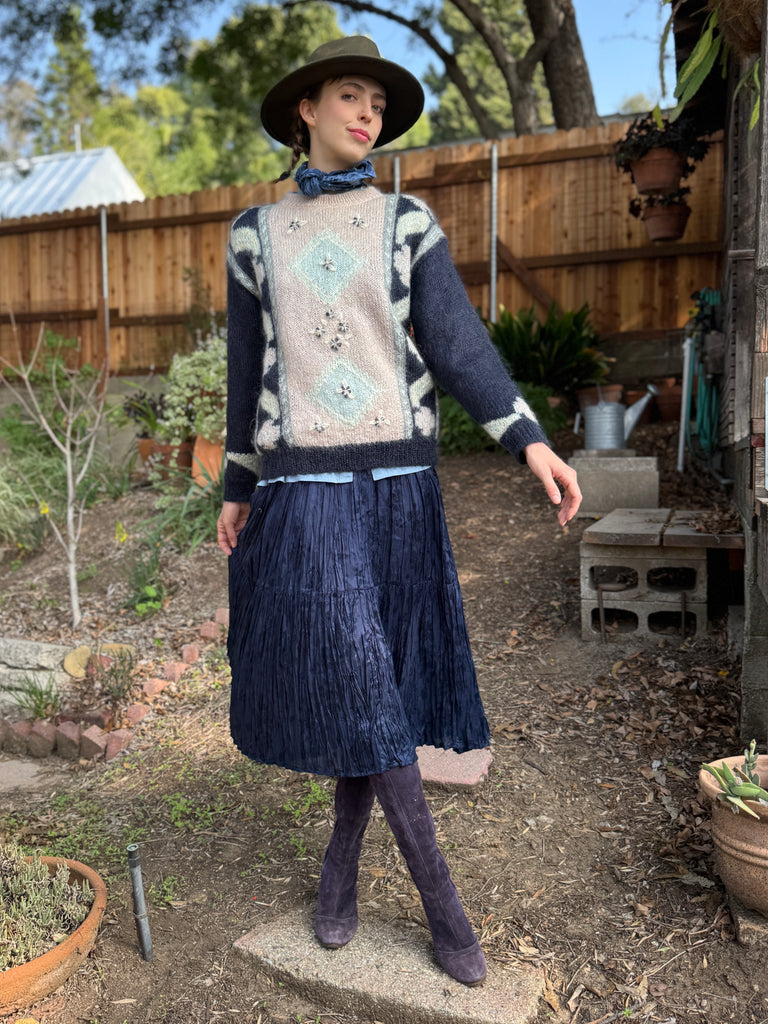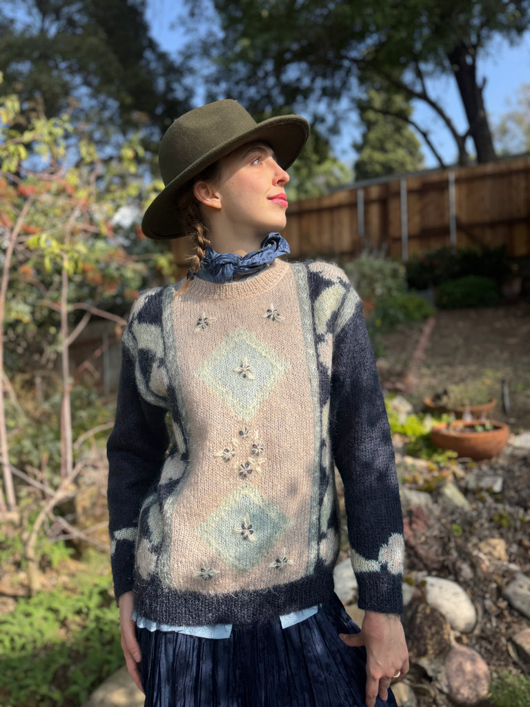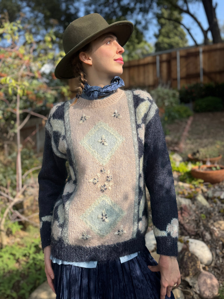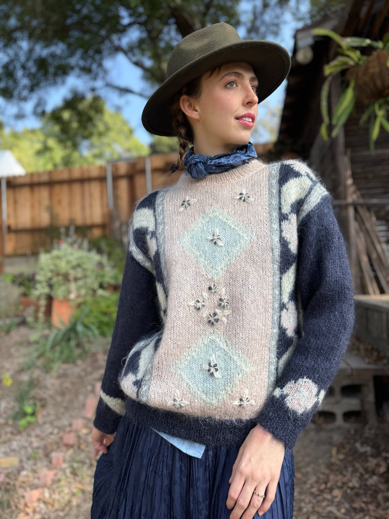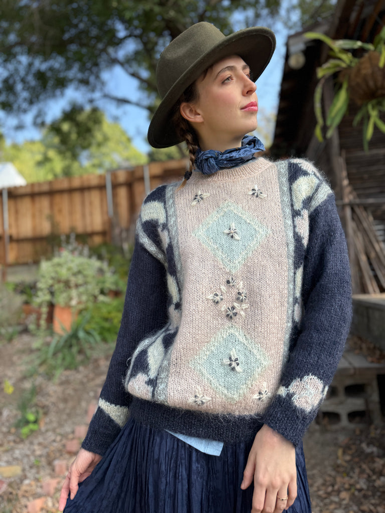 Vintage mohair blend pullover sweater with floral embroidery. This sweater is so romantic and sweet. A perfect layering piece!