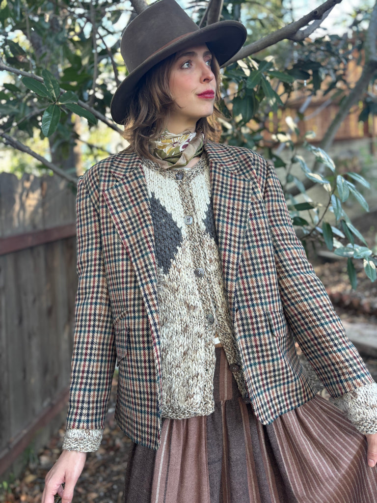 Vintage herringbone blazer in a great mix of green, blue, red and brown. So versatile and classic! Please see measurements below: